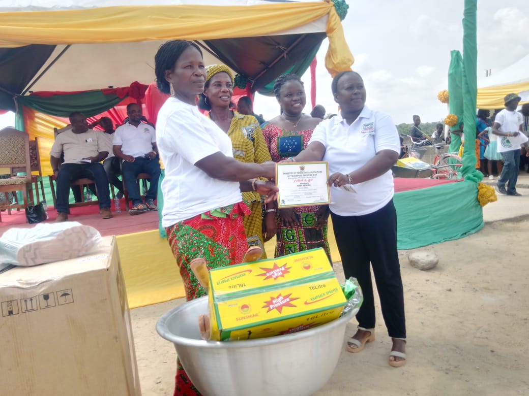 The Member of Parliament, Mr. John Abam Kobina Saanie, was glad and appreciated farmers for their immeasurable food productions and contributions towards their motherland. He assured farmers of quarterly supply of oil palm seedlings and cocoa seedlings to the farmers to ease them of their burden in securing agricultural seedlings. In all about 14 farmers were rewarded, some receiving tricyle , deep freezers , agricultural inputs like cutlasses ,Wellington boots and many other items.