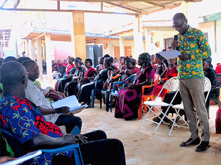 He said it's under the tenure of the president of Ghana that a lot of the youths are employed and others are given start-up capital to start their own businesses. With respect to social welfare issues, the government and the district regularly pay the school fees of these vulnerable children in the district. He again added the importance of the Ghana Productivity Safety Net Project, which is providing employment for the people. The supply of cocoa seedlings and oil palm seedlings, as well as the hiring of modern equipment like tractors and combine harvesters, aid in farming. In terms of physical support, the district assembly supplied roofing sheets to schools and communities anytime there was a heavy storm leading to the removal of roofing sheets. The District Chief Executive admonished members gathered to be aware of some of the problems going on in the district, like the circulation of fake currencies and the growth of ghettos, leading to the rise of criminals in the various communities. The Hon. Member of Parliament, Mr. John Kobina Abuah Abam Sanie, thanked the community members for honoring the invitation of the District Assembly and that of the Member of Parliament.