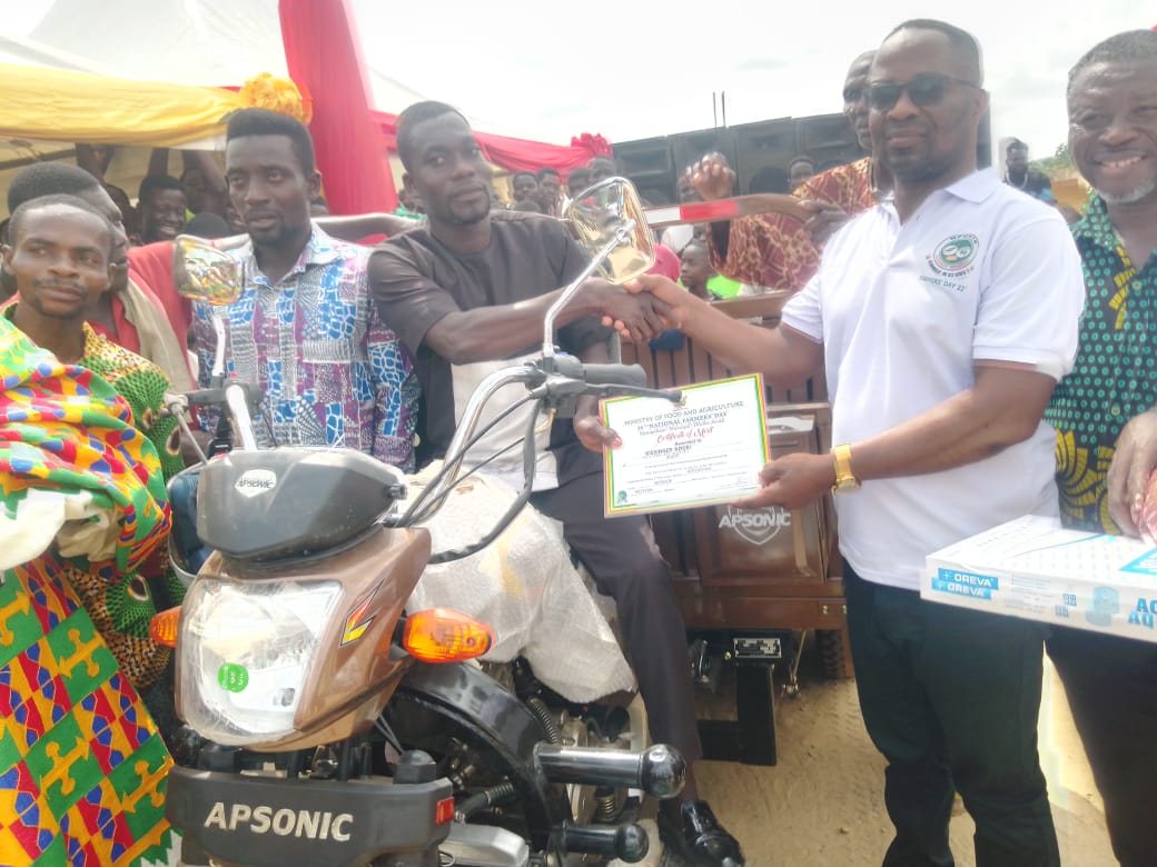 The Member of Parliament, Mr. John Abam Kobina Saanie, was glad and appreciated farmers for their immeasurable food productions and contributions towards their motherland. He assured farmers of quarterly supply of oil palm seedlings and cocoa seedlings to the farmers to ease them of their burden in securing agricultural seedlings. In all about 14 farmers were rewarded, some receiving tricyle , deep freezers , agricultural inputs like cutlasses ,Wellington boots and many other items.